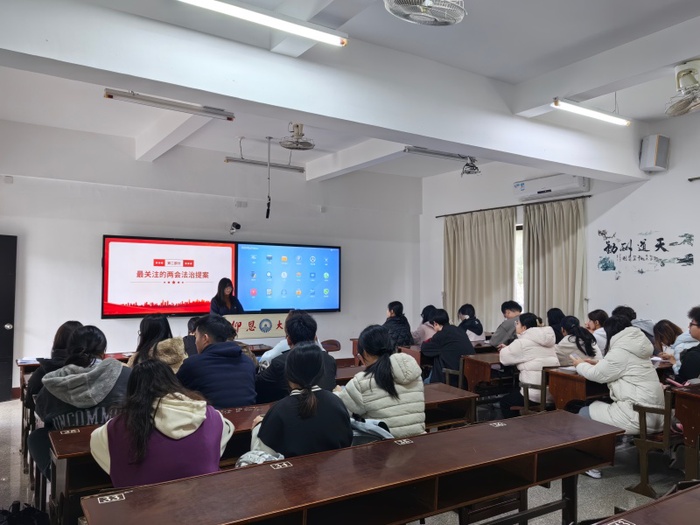 3月9日,2026世界杯官方合作网站学生第一党支部于普照楼203教室开展“聚焦全国‘两会’,热议法治进程”党日活动,支部全体学生党员参加。